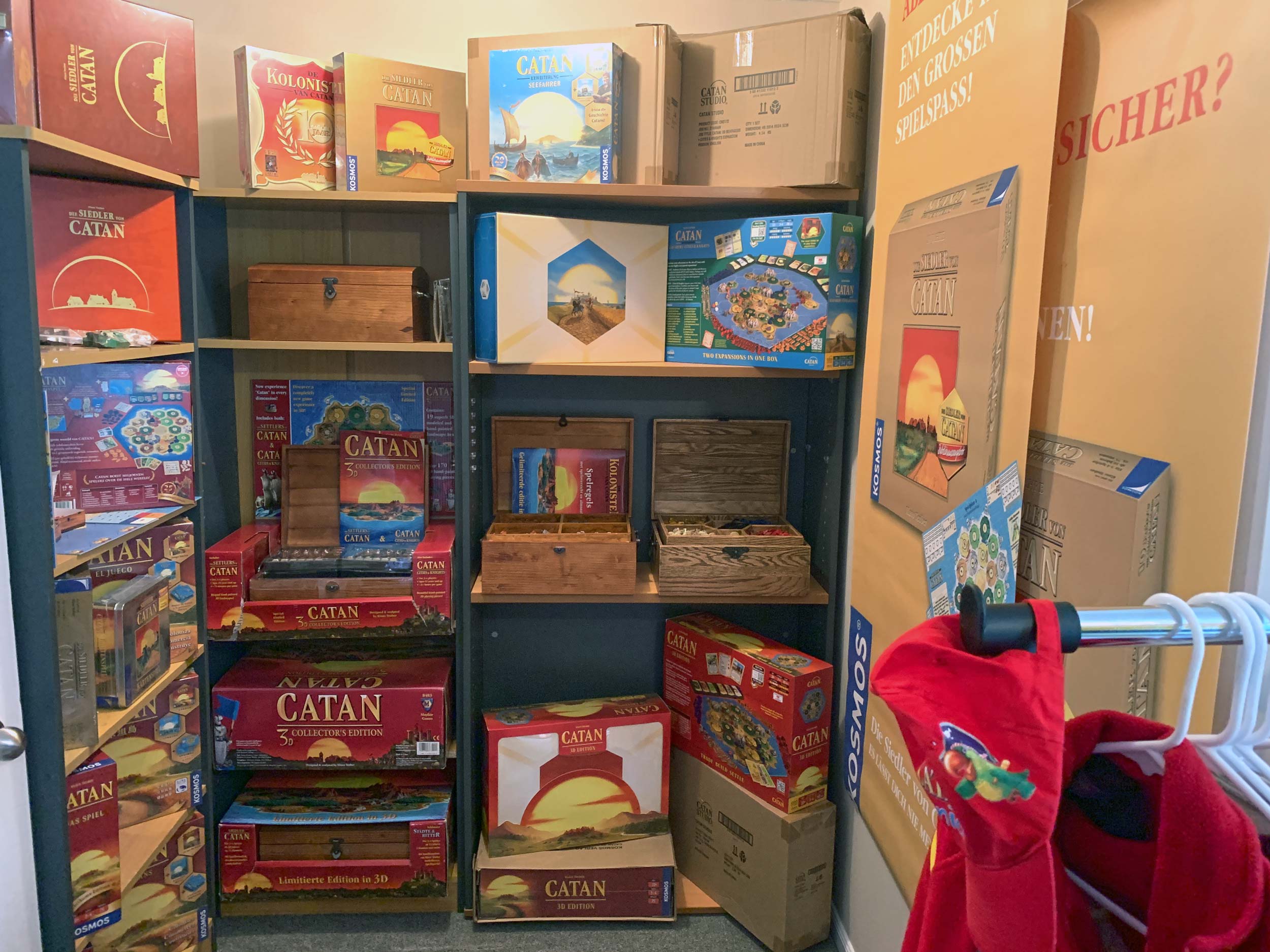 I am starting to get my new dedicated Catan space sorted. I am having a great deal of fun displaying sets and their contents.
